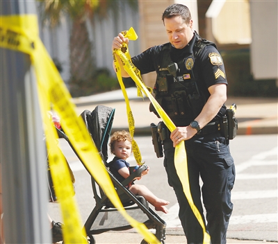3月27日,美国弗吉尼亚比奇警方封锁枪击事件现场。