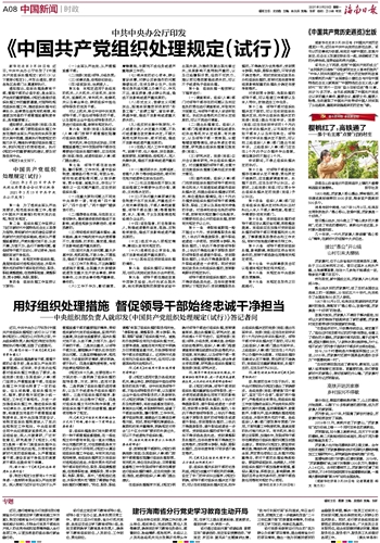 ~~~——中央组织部负责人就印发《中国共产党组织处理规定(试行)》答记者问