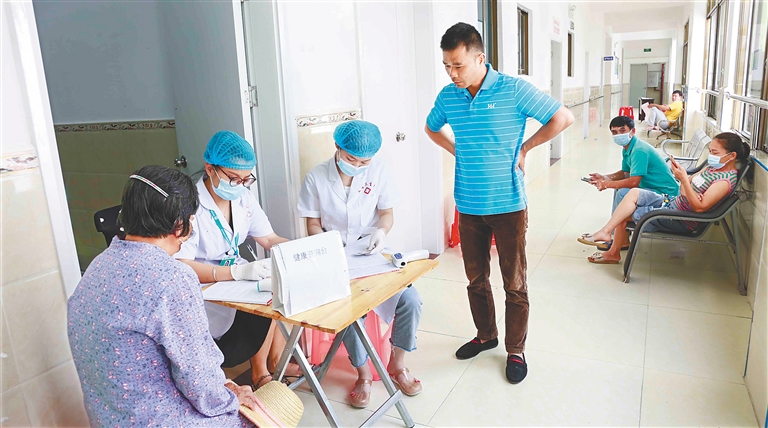 3月29日,在澄迈县文儒镇卫生院,村民在医护人员的引导下有序接种新冠疫苗。本报记者 陈元才 摄
