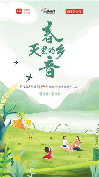 本报海口3月29日讯 (海报集团全媒体中心记者林芳羽)草长莺飞三月天,海南春景醉游人。城市里车水马龙的喧嚣,公园里孩童奔跑嬉闹声,藏在街头巷尾的烟火味……交织出了琼岛的春韵。3月29日,新海南客户端《乡音海南》栏目推出特别策划《春天里的乡音》,通过声音可视化,带你聆听乡音,记录春天,感受海南春天的韵律。