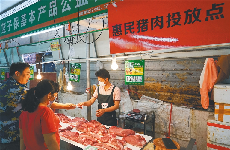 近日,三亚农投集团在该市荔枝沟南新农贸市场增设10个惠民热鲜猪肉临时摊位,保障生鲜猪肉市场供应,让市民吃上平价猪肉。