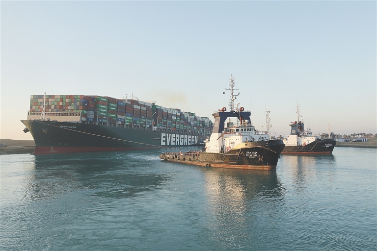 苏伊士运河搁浅货轮 已完全恢复至正常航道
