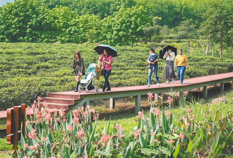 这样热闹的场面最近每周都在上演。“2018年,精心谋划打造的五里路茶韵共享农庄成为我省首批共享农庄试点单位之一,茶园规模也从最初的20余亩扩大至300亩左右,走上了农旅融合的道路。去年一年,我们接待游客1万多人次,今年1月-3月,我们接待游客量已经超过1.3万人次,超过去年全年。”海南五里路有机茶业有限公司总经理王见君告诉海南日报记者。