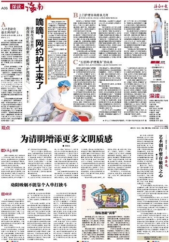 海南医疗机构探索“互联网+护理服务”,计划在全省推广~~~