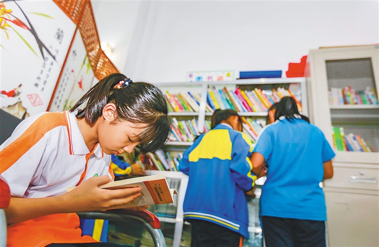 每天下午放学后,澄迈县文儒镇中心学校6年级学生邱曼莲都会来到文儒镇七彩书屋,继续看书,写作业,直到母亲忙完农活再接自己回家。