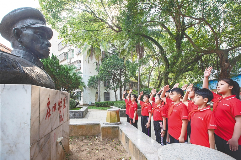 4月2日,万宁市烈士陵园,学校师生在这里开展缅怀革命先烈主题祭扫纪念活动。 本报记者 袁琛 通讯员 杨师忠 文/图