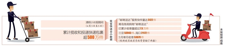 本报海口4月6日讯 (记者陈雪怡 通讯员曾文)海南日报记者4月6日从省邮政管理局获悉,清明小长假期间,全省邮政快递业保持稳定增长态势,未发生邮(快)件积压延误,未发生重特大生产安全事故,行业总体平稳有序。