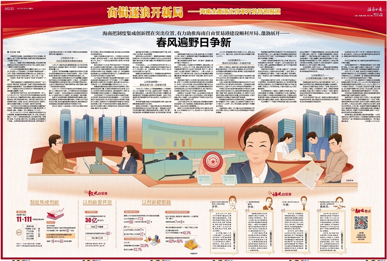海南以制度集成创新为核心,对标国内先进地区和国际,指导发动各部门、市县、园区积极踊跃开展创新工作,形成了一大批在全国具有较大影响力的改革创新成果——