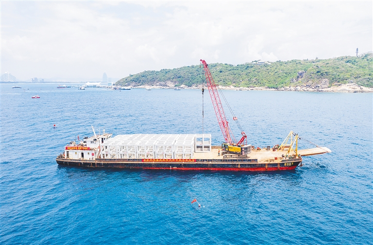 本报三亚4月8日电 (记者李艳玫 陈蔚林 通讯员陈文欣 许劲草)4月8日,在三亚蜈支洲岛海域国家级海洋牧场示范区,一个个白色的人工鱼礁被吊机轻轻地放入海底,它们将成为鱼儿的“新家”。据了解,三亚此次计划在一个月内完成870个人工鱼礁的投放,达3万多空立方。