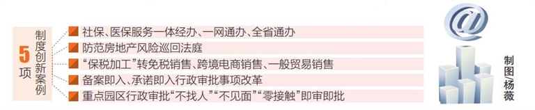今天发布的是一批以市县申报为主且质量较高的制度创新案例,分别是社保、医保服务一体经办、一网通办、全省通办,防范房地产风险巡回法庭,“保税加工”转免税销售、跨境电商销售、一般贸易销售,备案即入、承诺即入行政审批事项改革,重点园区行政审批“不找人”“不见面”“零接触”即审即批。