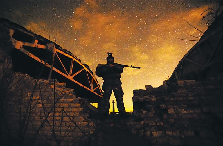 4月10日,一名乌克兰政府军士兵在乌东部顿涅茨克冲突地区执勤。