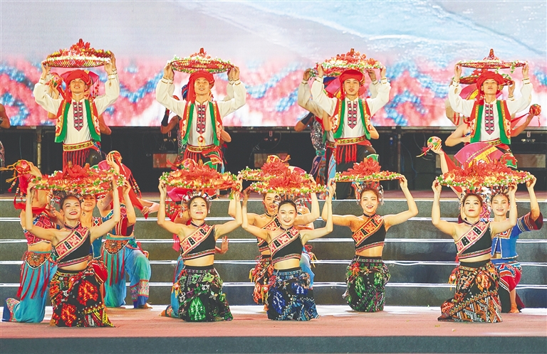 本报三亚4月12日电 (记者徐慧玲)4月12日晚,2021年三亚市庆祝海南黎族苗族传统节日“三月三”系列活动开幕式暨主题文艺晚会在三亚天涯海角游览区举行,以天为景,以海为幕,为黎族苗族同胞与八方宾客奉献了一场民族文化盛宴。