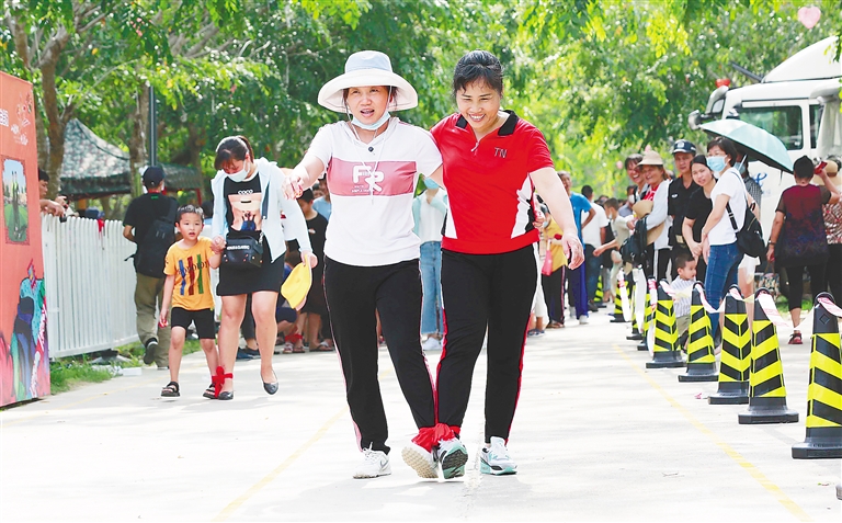 本报石碌4月14日电 (记者林书喜 见习记者刘婧姝 特约记者黄兆雪 通讯员黄海玲)4月14日上午,昌江黎族自治县文化公园内人头攒动,欢呼声、叫喊声此起彼伏。2021年海南黎族苗族传统节日“三月三”昌江主会场少数民族传统体育趣味活动在这里举行。身着节日盛装的黎族苗族同胞们早早来到这里,与游客们一起,通过参加趣味及游园活动来庆祝盛大的节日。