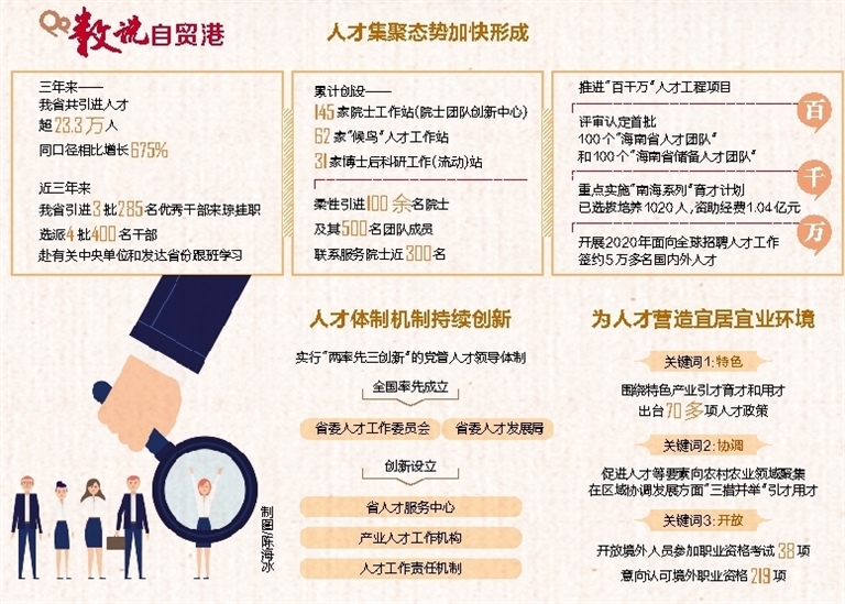 这三年,海南制定出台70多项人才举措,形成更加积极、更加开放、更加有效的人才政策体系,推进制度集成创新。