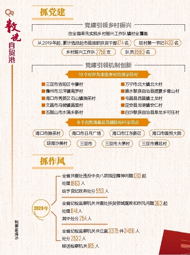 自贸港建设这一重大历史机遇为海南带来全新的挑战,三年来,海南以改革创新精神抓好党建,持之以恒正风肃纪,深入推进反腐败斗争,教育引导广大党员、干部自觉抵制不良风气,积极营造风清气正的良好政治生态。