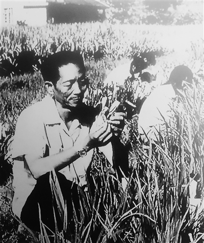 旧 1970年11月23日,袁隆平在崖县(今三亚市)南红农场发现野生稻“野败”,并于3年后成功培育出杂交水稻优良品种,为中国的粮食生产作出了突出贡献。图为袁隆平在崖县培育杂交水稻。本报记者 陈奕霖 翻拍