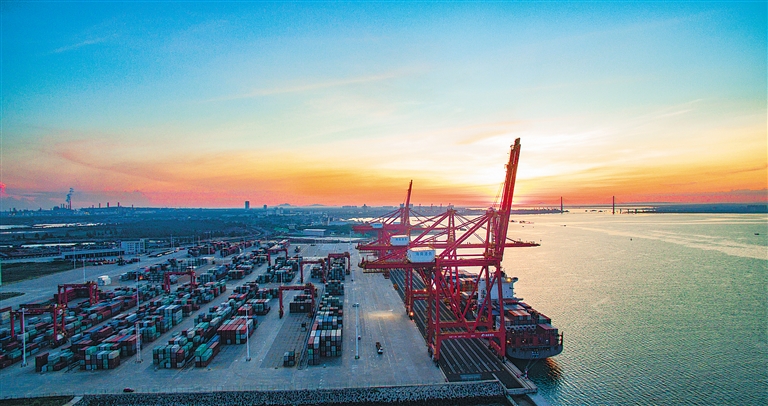 繁忙的洋浦经济开发区小铲滩码头。 本报记者 陈元才 摄