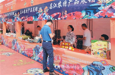 “参展3天来,我们每天的销售额在1000元左右,生意不错。”一家电子商务公司的销售人员陈小姐说,民俗风情一条街的展位是免费的,这次参展公司带来了乌烈乳羊、霸王鸡、山兰米等昌江特色农产品,受到市民游客的欢迎。