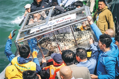 4月16日,辽宁大连举办西太平洋斑海豹野外放流活动。本次活动中放流的8只西太平洋斑海豹,其中3只为之前救助的野生西太平洋斑海豹,5只为人工繁育经野化训练达到放流标准的西太平洋斑海豹。工作人员为它们佩戴了追踪设备,实时监测放流后的生活情况。