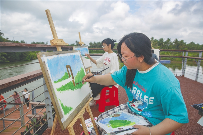 位于博鳌亚洲论坛国际会议中心旁的博鳌镇沙美村,面朝生态优美的沙美内海,被九曲江、龙滚河环绕,同时拥有山峦、林野、田园风光,集“山水林田湖海”于一身,良好的生态是这里最大的财富。在沙美村二期的博鳌“袁家村·沙美印象”,小河流水潺潺,田园风光写意,黑天鹅划过水面,为这里的悠哉气象增添别样诗意。漫步在本地特色民居和骑楼风格的建筑群中,纵享美好春光。