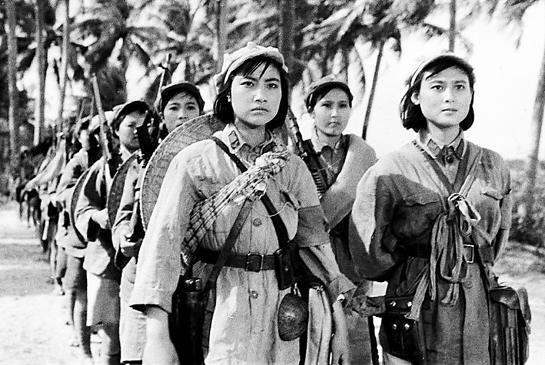 真正让红色娘子军事迹进入全国视野的,是电影的改编创作。这部电影让蕉风椰雨中“向前进,向前进”的旋律,成为不少人心中抹不掉的记忆。1961年7月1日,电影《红色娘子军》在全国首映,举国轰动。该片以生动感人的情节,展现了妇女解放和人民战争的画面,成功塑造了吴琼花的形象,创下了当年8亿人口有6亿人观看的盛况。