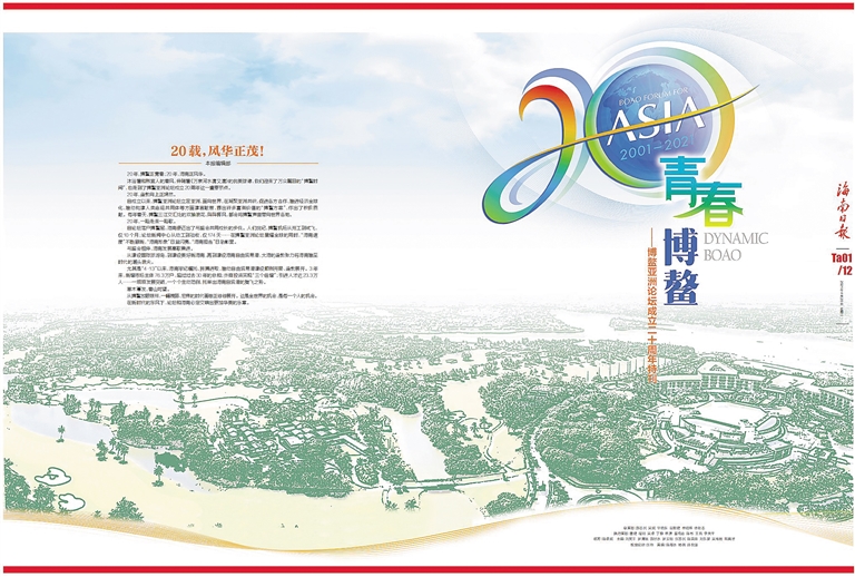 本报海口4月19日讯 (记者陈卓斌)春风催岸绿,三江起新潮。4月20日,海南日报精心策划、推出特刊《青春博鳌——博鳌亚洲论坛成立二十周年特刊》《博纳百川——博鳌亚洲论坛2021年年会大型“云”特刊》,展现论坛20年的发展成果,以及海南各行业、市县、企业服务论坛、借力论坛,乘势而上交出的高质量发展精彩答卷。