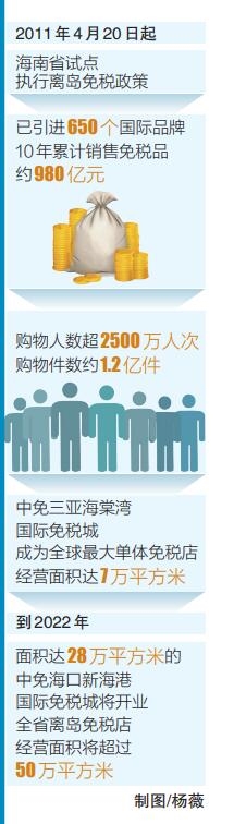 4月19日,我省离岛免税购物政策实施十周年新闻通气会上发布的数据显示:十年间,海南建成了全球最大单体免税店,培育了在全球免税行业中排名第一位的中免集团;引进了650个国际品牌,其中雅诗兰黛、卡地亚、宝格丽、蒂芙尼等20多个品牌单店销售位列全球免税零售第一;相对于完税市场,国人在海南购买免税品累计节省成本约200亿元。