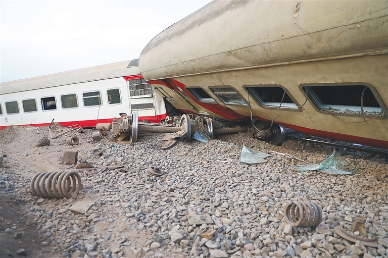 埃及卫生部18日晚说,该国当天发生的客运列车脱轨事故已造成至少11人死亡、98人受伤。一列客运列车18日从埃及首都开罗开往北部城市曼苏拉,途中在图赫市突然有4节车厢脱轨。 新华社发