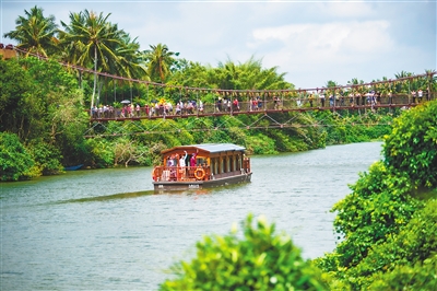 4月的海南博鳌,春意盎然,宾朋满座。万泉河畔的南强村、沙美村、留客村等流水潺潺、绿树环绕、恬静悠闲,一派田园好风光。“田园风”与“国际范”奏出交响曲,为博鳌亚洲论坛年会增添新亮点。