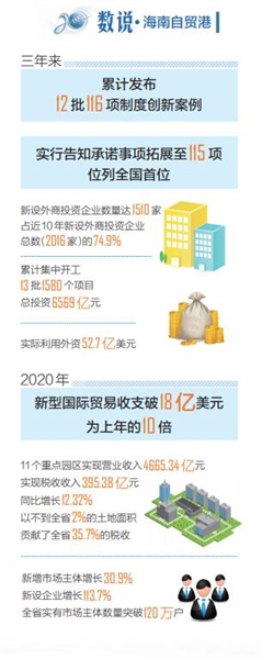 数据显示,2020年全省新设市场主体同比增长30.9%,其中新设企业同比增长113.7%、位列全国第一;市场主体总数达124万户;总部企业累计入驻64家。这是海南发展环境持续改善结出的硕果。