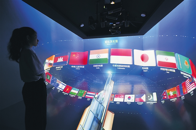嘉宾可在看苑第一展厅观看全息影片。本报记者 王凯 摄 |