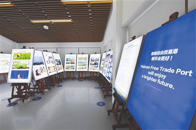 正在久苑举办的《海南全面深化改革开放(二〇一八至二〇二一)》图片展。本报记者 王凯 摄 |