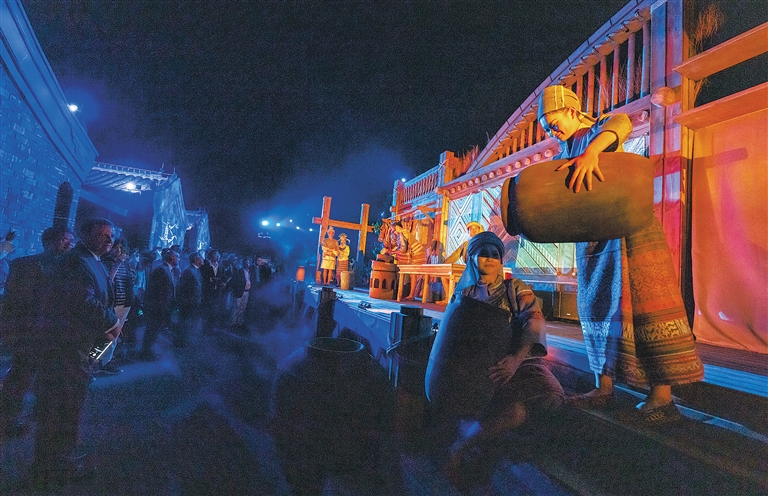 黎锦、儋州调声、欧欧调、临高人偶戏、海南八音、渔歌等海南文化,唤出“一带一路”上织锦、音乐、木偶、服饰等不同文化的对话,交相辉映、相得益彰,让天地呈现于一片锦绣之中。