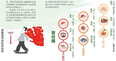 “痛风是目前唯一一个可以临床治愈的风湿病。然而痛风病人的治疗现状却让人堪忧。”张延表示,很多痛风患者,总是希望有“特效药”,其实改善生活方式,才是痛风非药物治疗的核心环节。防治高尿酸血症及痛风,简单来说15个字——“管住嘴,迈开腿,多喝水,不抽烟,少喝酒”。