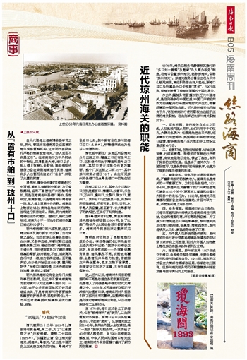二、 监管职能,包括货运监管、运输工具监管、行邮监管等。琼海关对贸易进行严密监管,有效地限制了走私,保证了税收,有利于贸易的正常发展。但是由于海关作为一个国际官厅,它是保持良好的贸易秩序,也是为了维护列强在海南的利益。