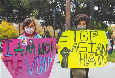 4月25日,人们在美国加利福尼亚州旧金山湾区城市圣何塞集会抗议针对亚裔的歧视行为和仇恨犯罪。 新华社发(董旭东 摄)