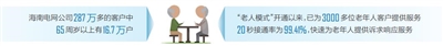此外,海南电网公司还聚焦老年人运用智能技术困难、“候鸟”居民客户远距离服务等难题,提出多种线上线下解决方案,让老年人及各类客户更好地享受信息化发展成果和优质服务。