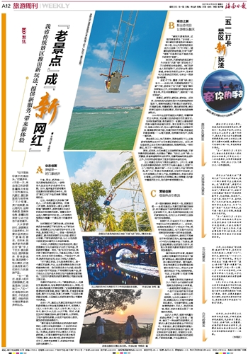 老景区,新项目;新玩法,新体验。近年来,在传统观光旅游向现代休闲度假游转变驱动下,海南传统景区不断通过引进新项目、打造新设施、完善新服务、推出新活动等,满足客群日益变化的游玩需求,同时培育旅游消费新热点。