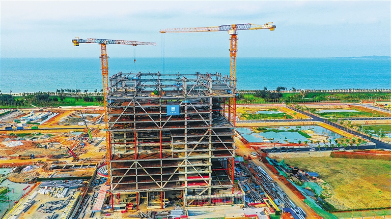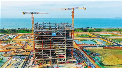 近日,海南国际能源交易中心大厦项目钢结构封顶。