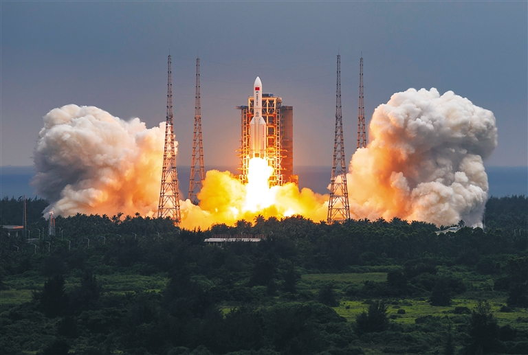 4月29日,中国空间站天和核心舱在文昌航天发射场发射成功。 本报记者 李天平 摄