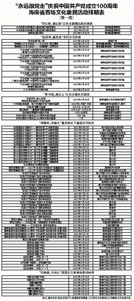 “永远跟党走”庆祝中国共产党成立100周年 海南省百场文化惠民活动排期表