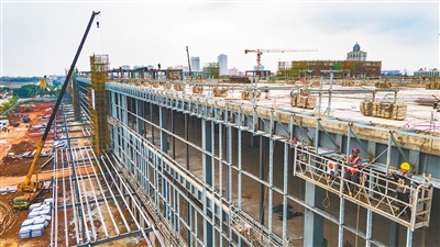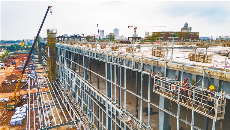 近日,在洋浦经济开发区洋浦保税港区内的标准厂房及海外仓项目,部分工人开始进行外立面装修。该项目完工后,将为入驻洋浦的企业提供生产经营场所,降低企业运营成本。本报记者 陈元才 摄