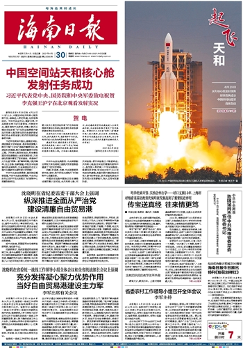 | 海南日报 头版 001 2021-04-301 2021年04月30日 星期五 |