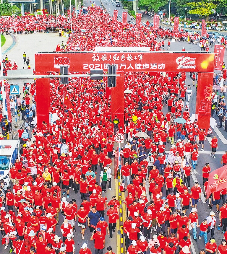 5月2日,琼海万人徒步活动在琼海市万泉河喷泉广场举行。(更多报道见A04版)