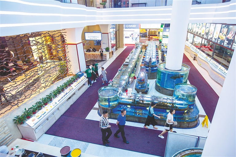 椰城特色美食馆、风味小吃街、饮品休闲驿站三大餐饮消费点设于6号馆,总面积约6500平方米,可满足每天2万多人次的餐饮需求。
