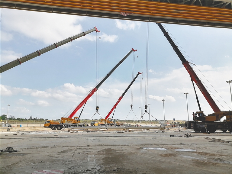 本报讯 (记者张期望)日前,由中国建筑第八工程局有限公司海南分公司承建的美兰空港一站式飞机维修基地(一期)项目1号大修定检机库大门吊装完成。目前,项目已进入装饰装修收尾阶段,预计7月底完成竣工验收。