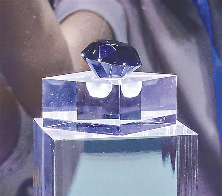 本报海口5月7日讯(记者傅人意)88克拉、价值2.5亿元人民币的黑钻长啥样?5月7日,首届中国国际消费品博览会上,在人气极旺的5号国际展馆绿地集团展区,一颗星光熠熠、闪闪发光的黑钻吸引了众多观众围观。