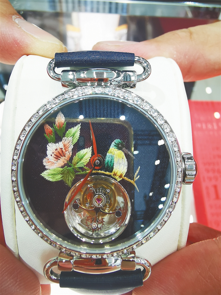 本报海口5月7日讯 (记者王培琳)腕表表盘里有精致的苏绣,有银丝编制的花丝,还有武汉地标黄鹤楼……5月7日,作为复星大快乐板块成员之一,豫园股份旗下汉辰表业集团品牌在消博会上展示了国潮腕表最新的产品系列。