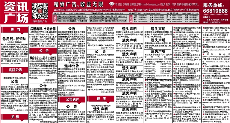 ●王海珊不慎遗失居民身份证,证号:460026198310133147,现特此声明。