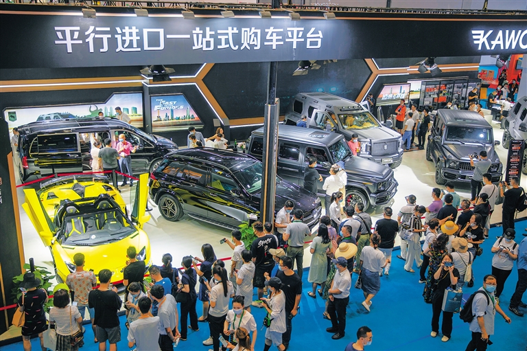 5月8日,首届中国国际消费品博览会开展第二天,会场中外客商云集,人气持续爆棚。 本报记者 李天平 摄